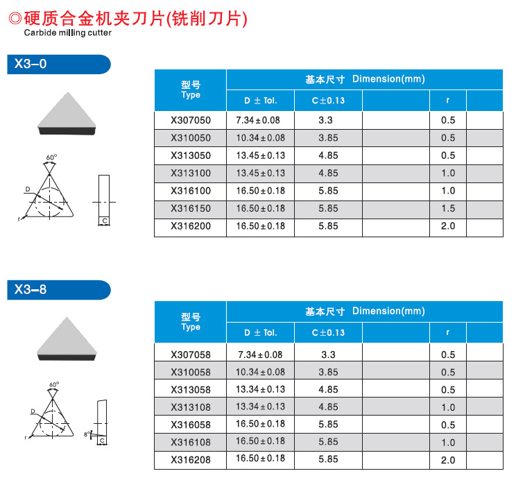 三角形硬質(zhì)合金機(jī)夾銑削刀片